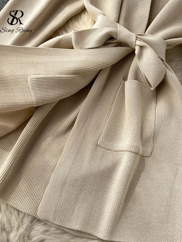 SINGREINY Winter Casual Two Pieces Suits Long Sleeve Knitted Cardigan Coat+Elastic Waist Wide Leg Pant Female Loose Sweater Sets