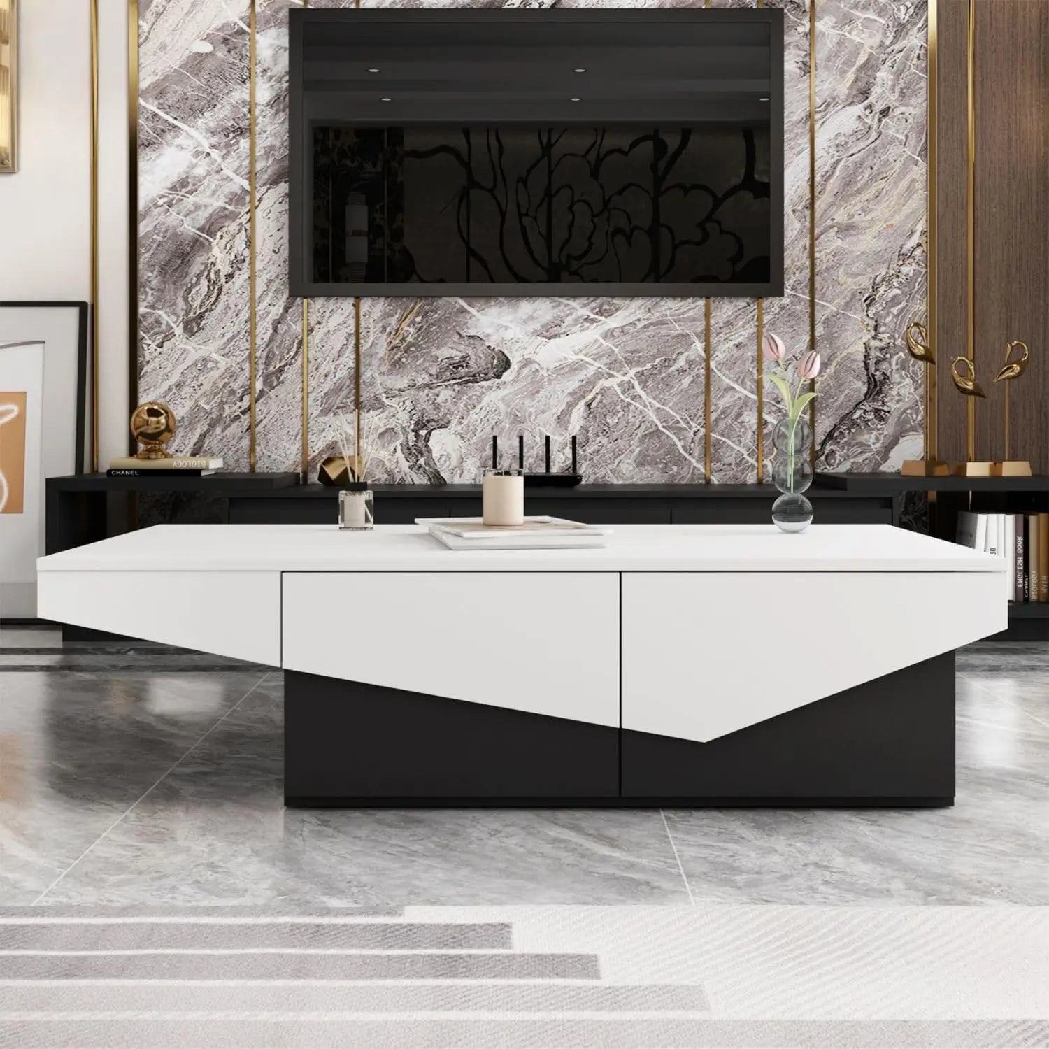 Modern Coffee Table with 4 Drawers, Central Table Living Room with Storage, White and Black Wood - United States / VIP Price is backordered and will ship as soon as it is back in stock.