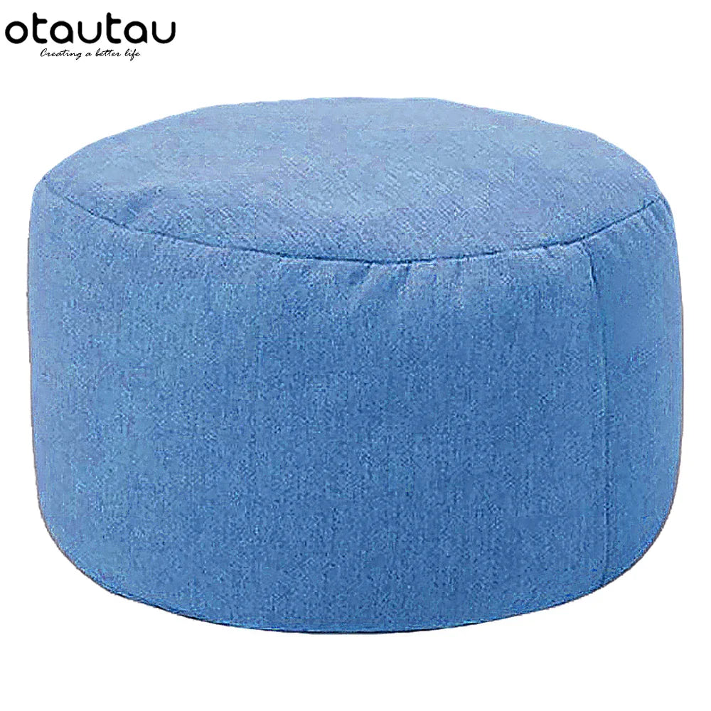 OTAUTAU Round Stool D30cm*H20cm Linen Bean Bag Ottoman with Filling Beanbag Pouf Footstool Tatami Futon Puff JD001 - ice blue / VIP Price is backordered and will ship as soon as it is back in stock.