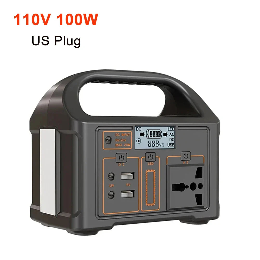 100W Portable Power Station 220V/110V Solar Generator Outdoor Emergency Mobile Power Bank 24000mAh LiFePO4 For Camping Power LED